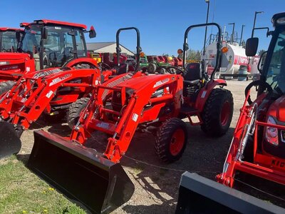 TLM, center-mounted mower 60", front-end loader, attachment bucket for compact loader, 0% or cash...