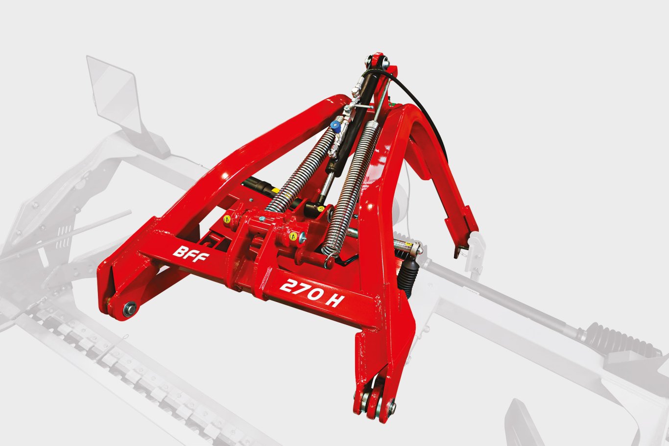 On all models of mounted mowers, the bar adapts to the inclinations of the ground, allowing cutting operations to be carried out even in difficult ground conditions. We recommend using the machine tilted for a very short time.