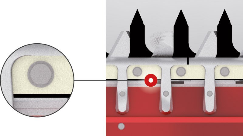 The “Pull back” system is activated, together with the lightening springs, whenever the cutting bar encounters obstacles, pushing it backwards and upwards by means of the parallelogram and then automatically returning to the working position. As a result, the work is safer and uninterrupted.