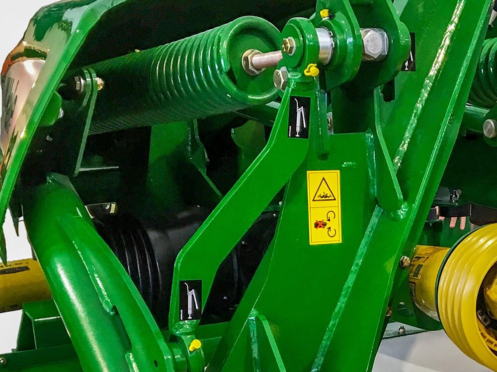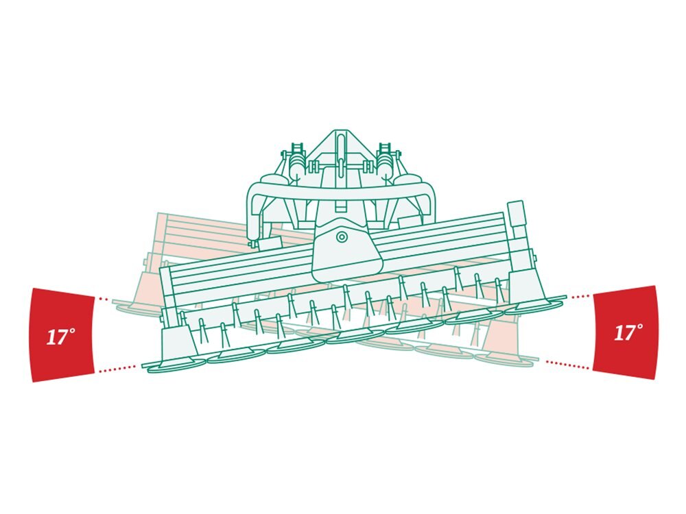 The McHale Pro Glide F3100 Front Conditioner Mower suspension allows the cutter bar to move independently of the tractor’s linkage. The McHale patented spring compensator ensures that cutter bar ground pressure is maintained over the 500 mm Vertical Travel Range and the cutter bar angle automatically adjusts up & down to the changes in the ground conditions |