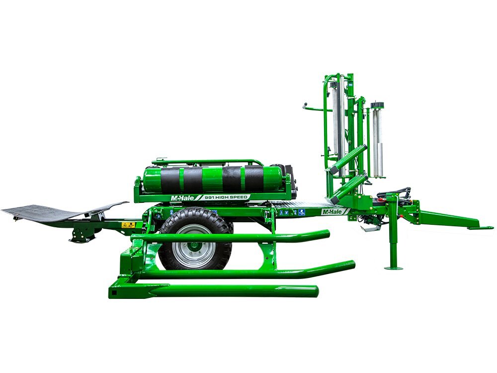 Watch the video for the McHale 991 High Speed, setting the pace for efficient and effective round bale wrapping, with it’s twin dispensers, hydraulically operated cut and hold system, reduced wrapping time and Patented Ground Supported Damper System.